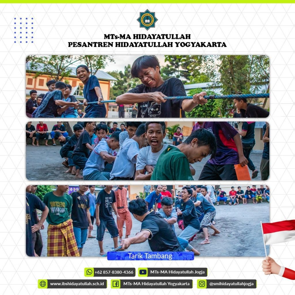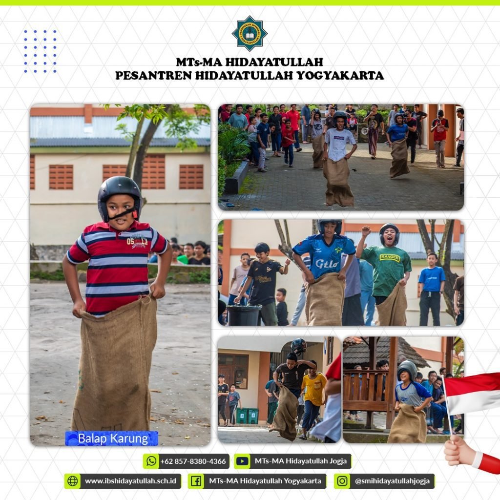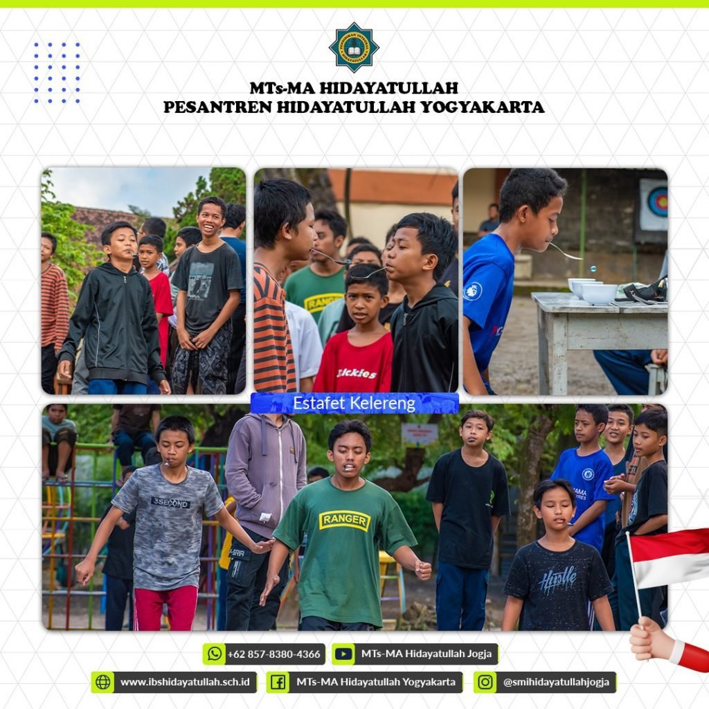 Lalu paginya dengan semangat 554 para santri memulai dengan lomba lari estafet, kemudian break sarapan sebentar dan dilanjutkan dengan perlombaan lainnya seperti estafet kelereng, balap karung, makan kerupuk dan pecah air.
